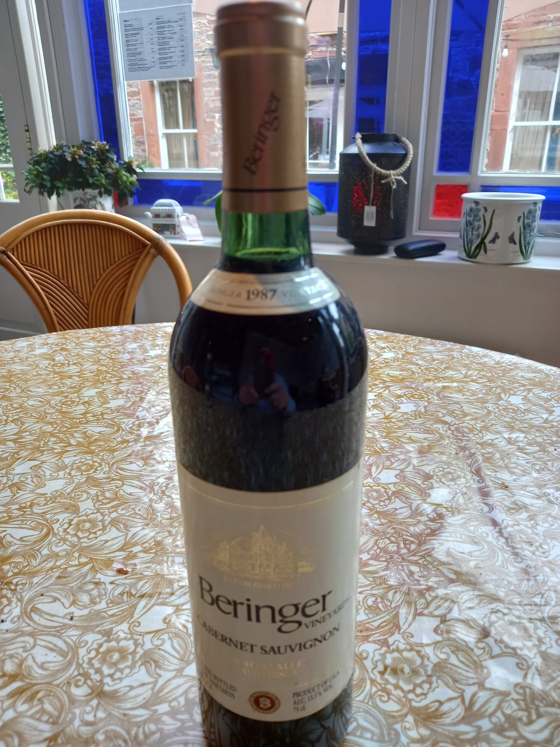 This bottle spectacularly outperformed my expectations and is truly noteworthy. The bottle was cellared under excellent conditions since purchase @ 28 years ago. I pulled it from the cellar cautiously, thinking that it could be well past its prime… Not! The cork was in excellent condition, purple stained and intact. There is a fair amount of sediment along and attached to the shoulder of the bottle. The color is brick. The nose is of sweet dark cherries, leather and a hint of toasted oak. The palate is glorious with notes of cherries and berries, mocha and chocolate.It has a long, luxurious finish and a slight tang on the sides of the tongue at the very end testifying to some residual tannins. The luscious fruit, still strong, sings along the palate. At 30 years of age, this could last even longer. Sadly, none remain.